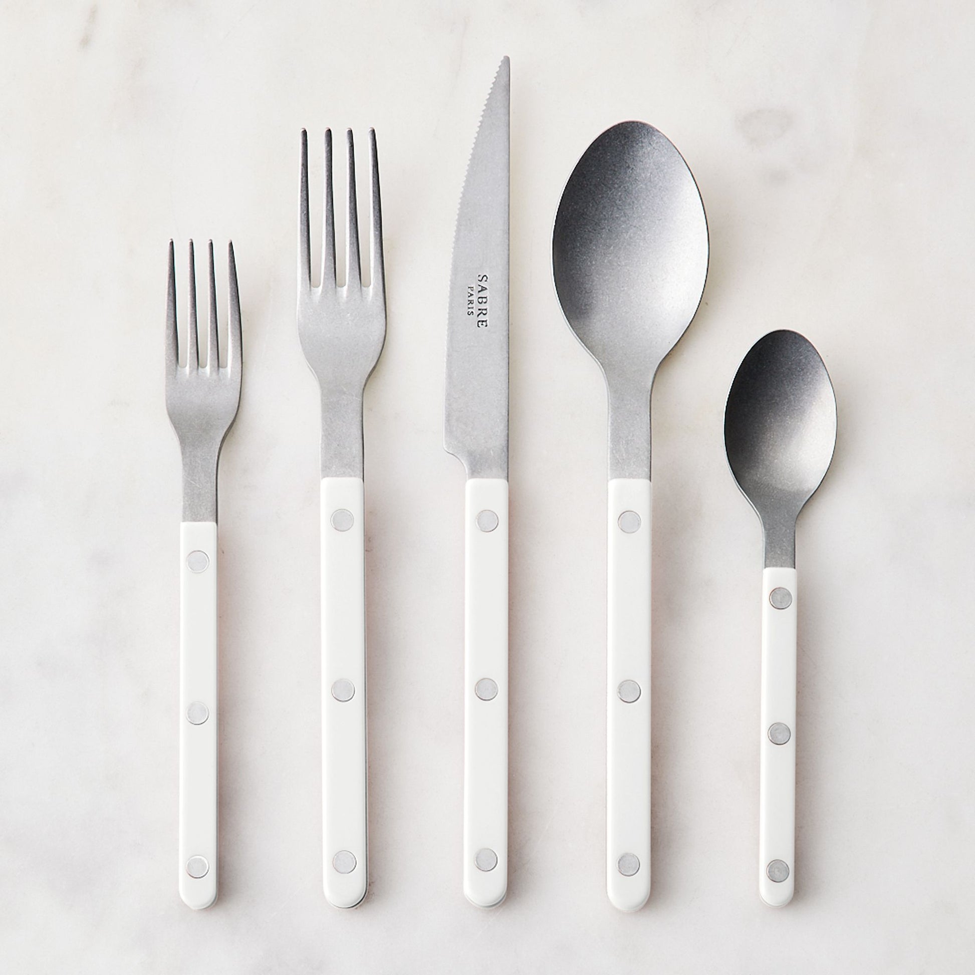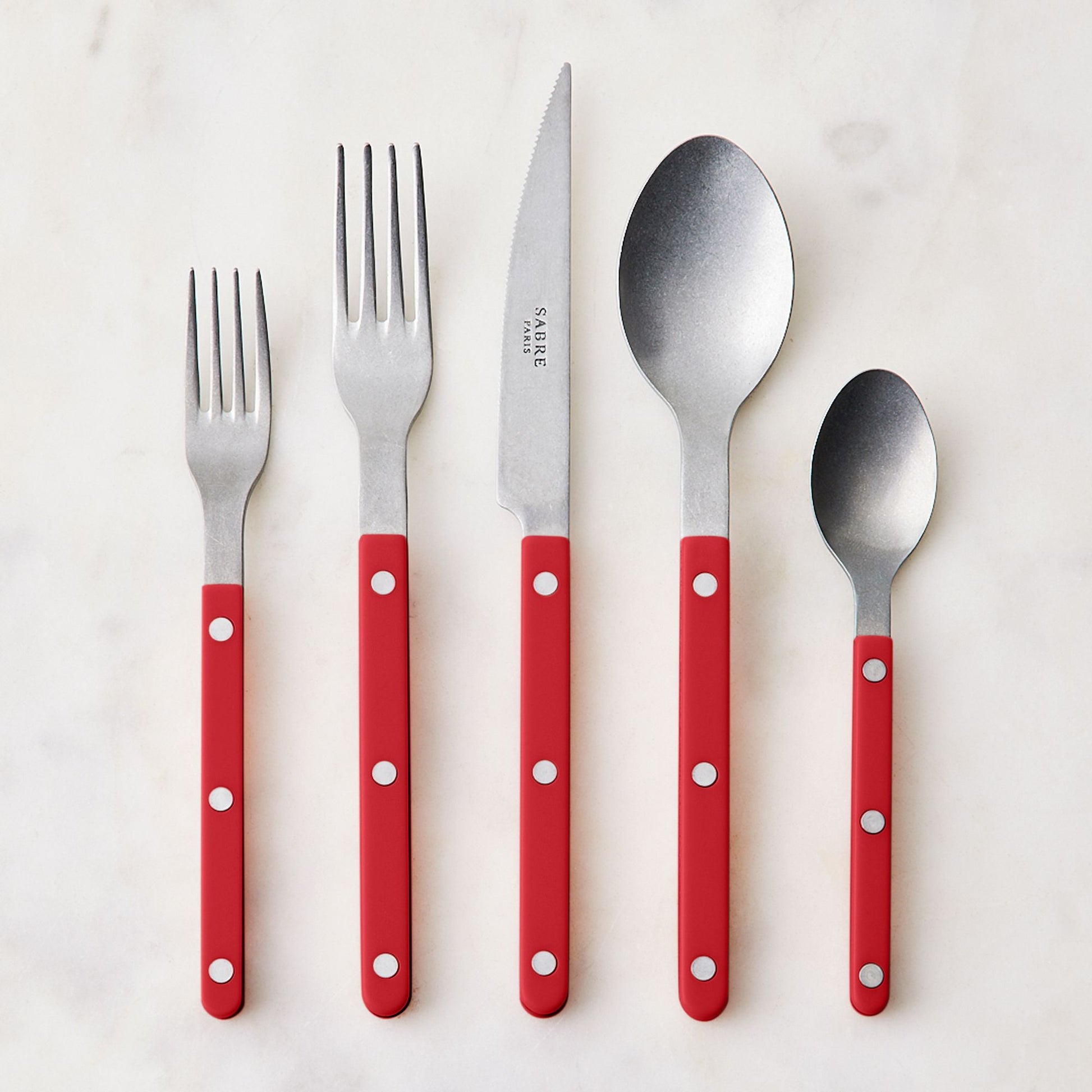 Sabre’s Bistrot collection is inspired by the restaurants, terraces, and cafes all over Paris, and we can totally tell. Every utensil has simple styling, modern details, and visible rivets for a classic touch. Take a close look at this flatware, and you’ll also spot a vintage-style finish.