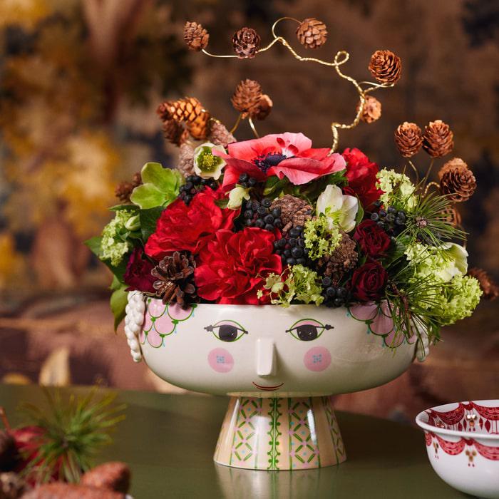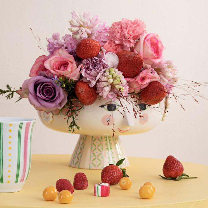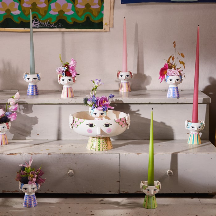A decorative, unique ceramic bowl, the Eva Bowl On Stand is a delightfully endearing design piece for your home. Fill the bowl with sweets, nuts, dried fruit—or leave it out with nothing at all inside. With an insatiable craving for creativity and creation, Bjørn Wiinblad’s designs are all infused with an energetic joie de vivre that’s unique in both Danish and international, art.