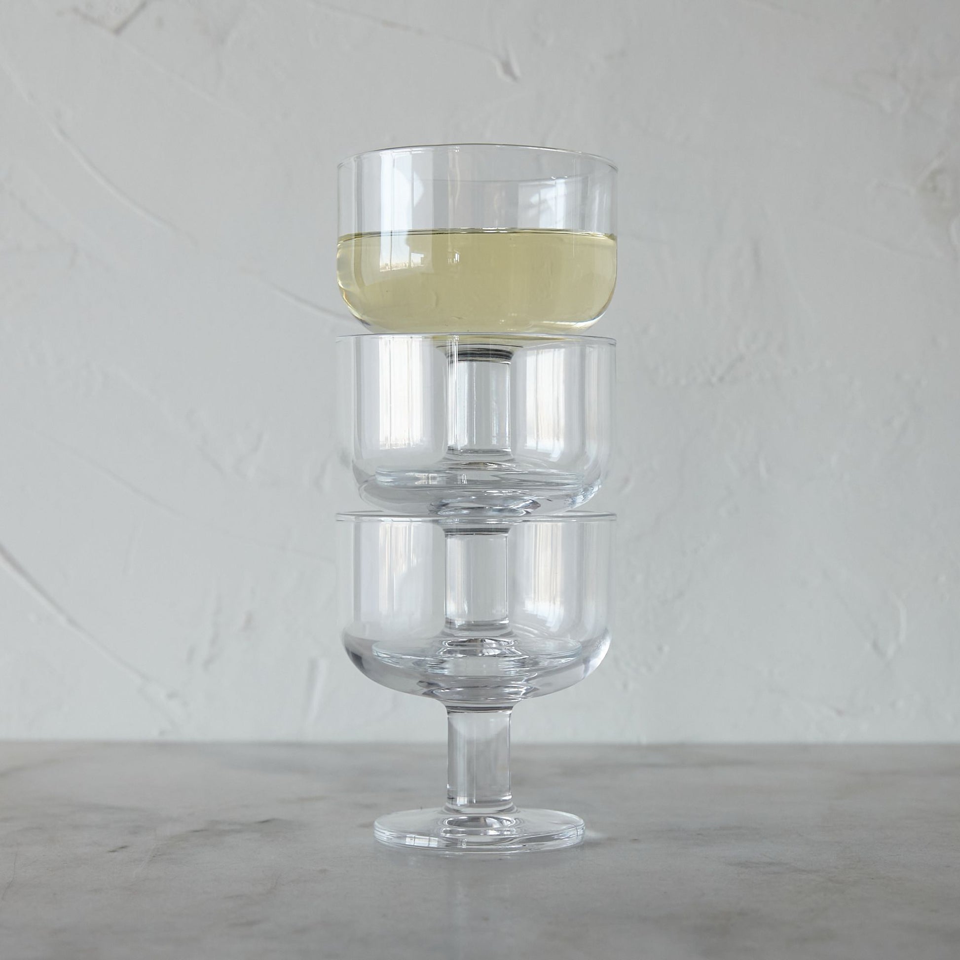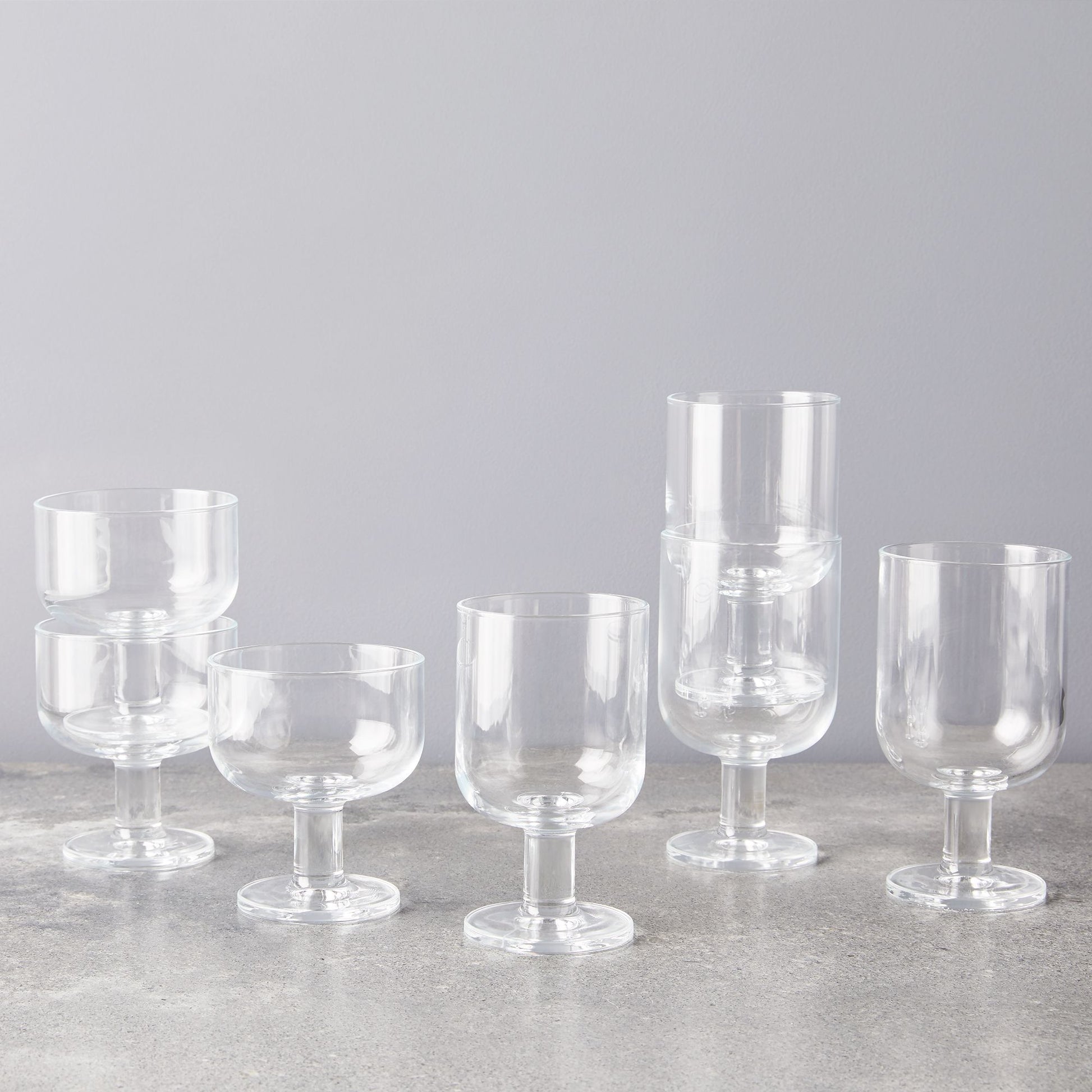 Ever met stemware that could stack? You have now. Made from extra-sturdy tempered glass, these glasses shine at serving wine or bubbly—but we also love them for water, juice, and dessert (chocolate mousse, perhaps?). Oh, the cabinet space they'll save.