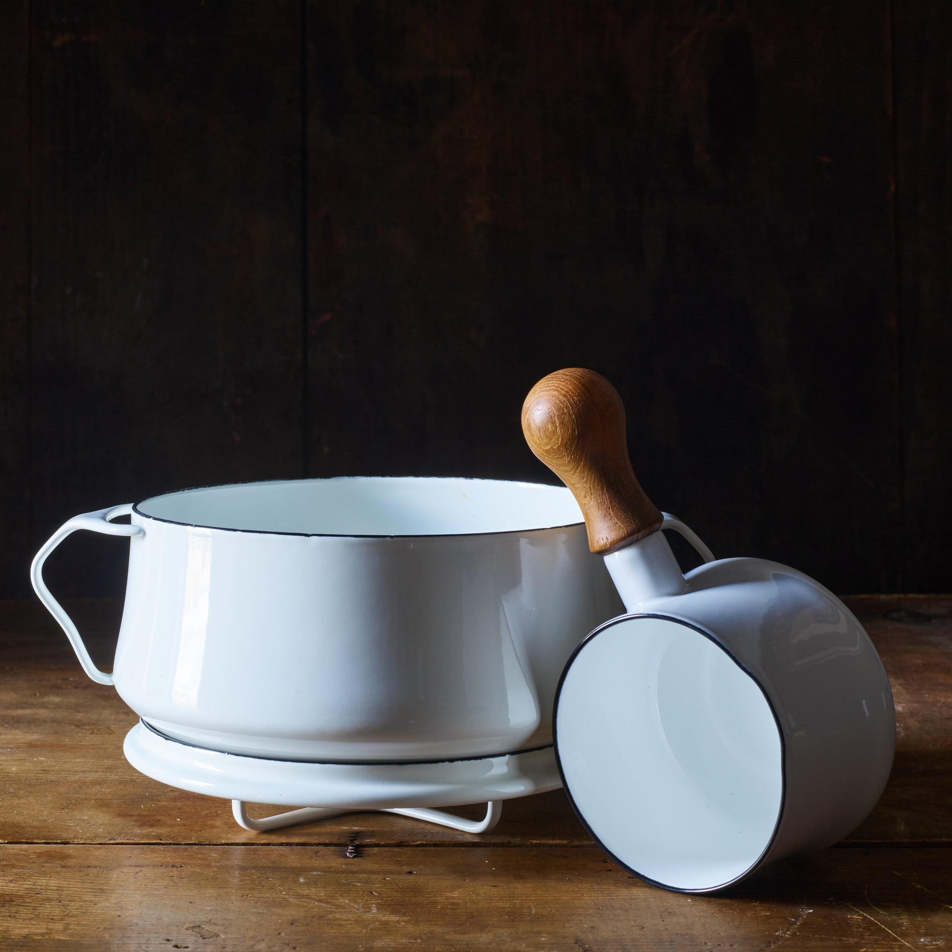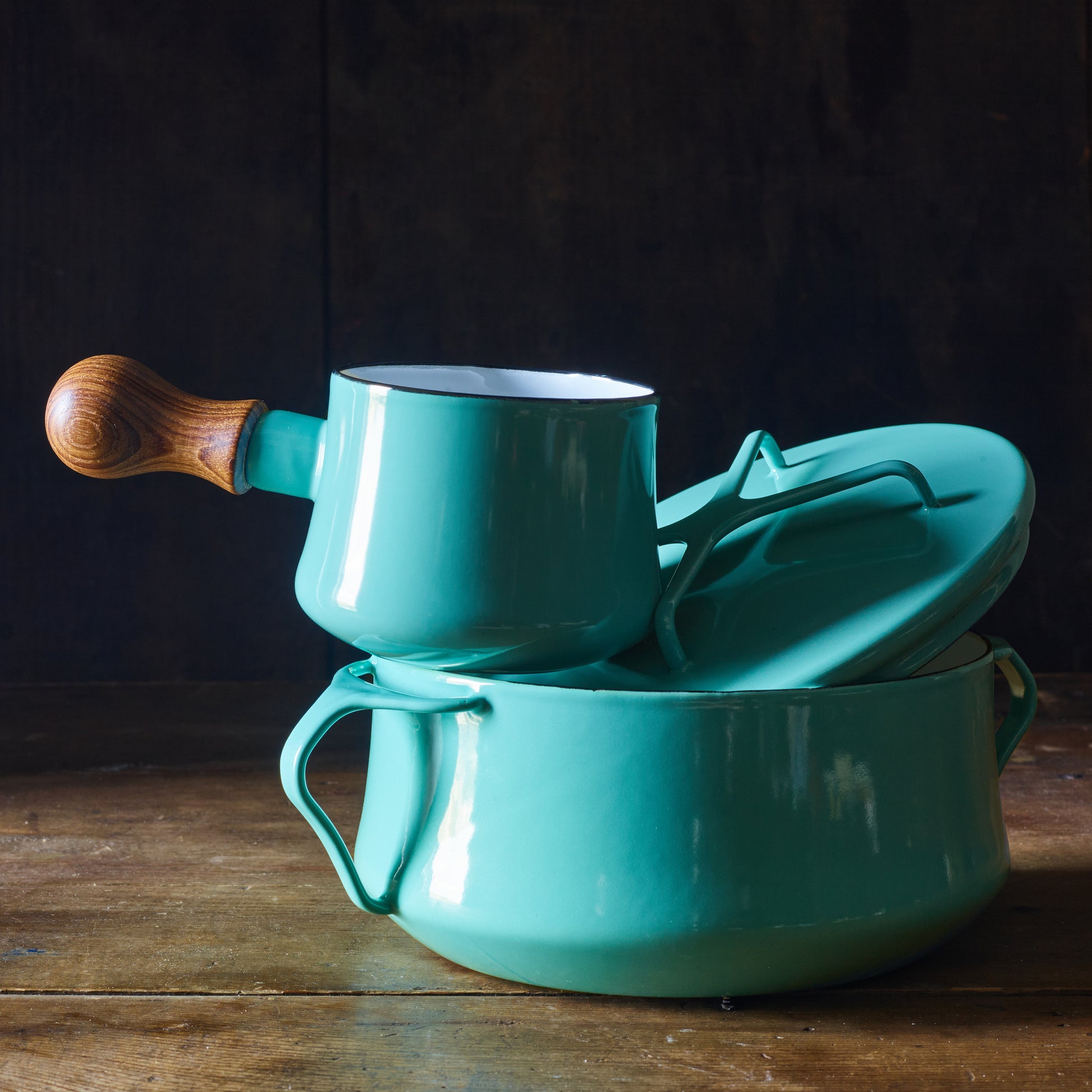 Once only a precious vintage find, the Dansk Købenstyle casserole is now one of those gotta-have-’em pieces for the home cook who loves their retro vibes. The triple-enameled carbon steel heats evenly—and it’s so darn pretty, we can bring it straight to the table, where the ingenious lid doubles as a trivet.