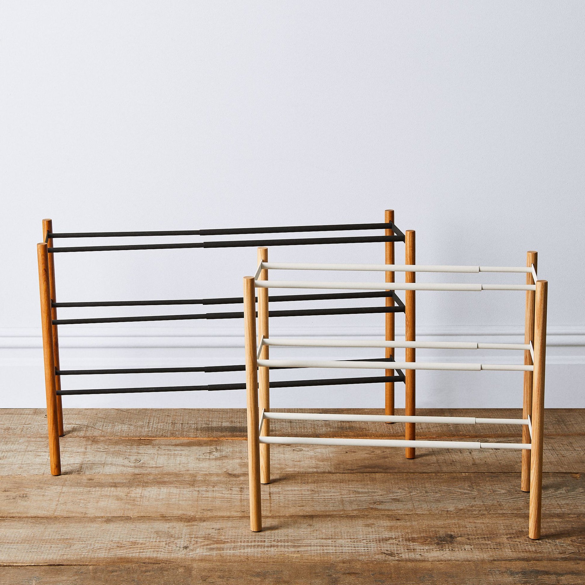 A good shoe rack will keep your footwear tidy, organized and aerated. A great one will make your room look good. And a brilliant one? Well, a brilliant shoe rack fits your space perfectly. As it so happens, this three-tiered shoe rack expands horizontally for however much space you need, up to 16 smaller shoes and 12 larger shoes. As your family and your space (or your shoe collection) expand, so will your shoe rack.