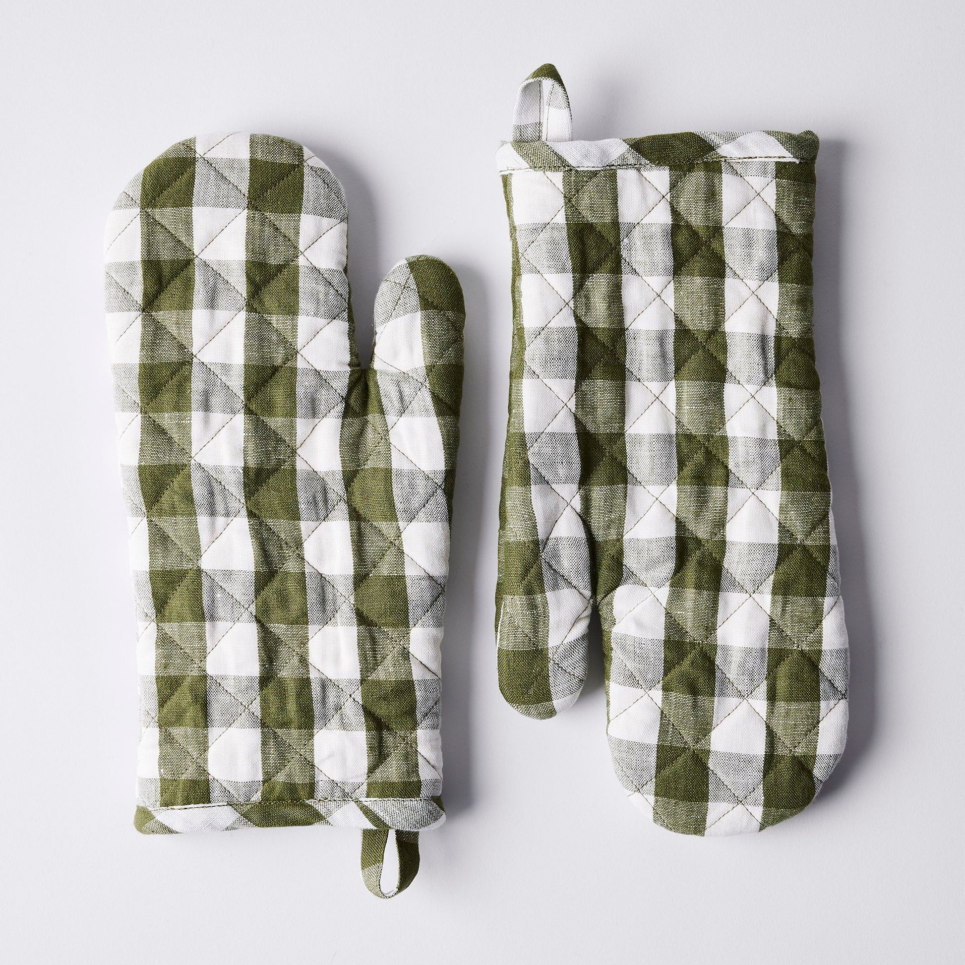 Food52 Gingham Linen Oven Mitts, Set of 2