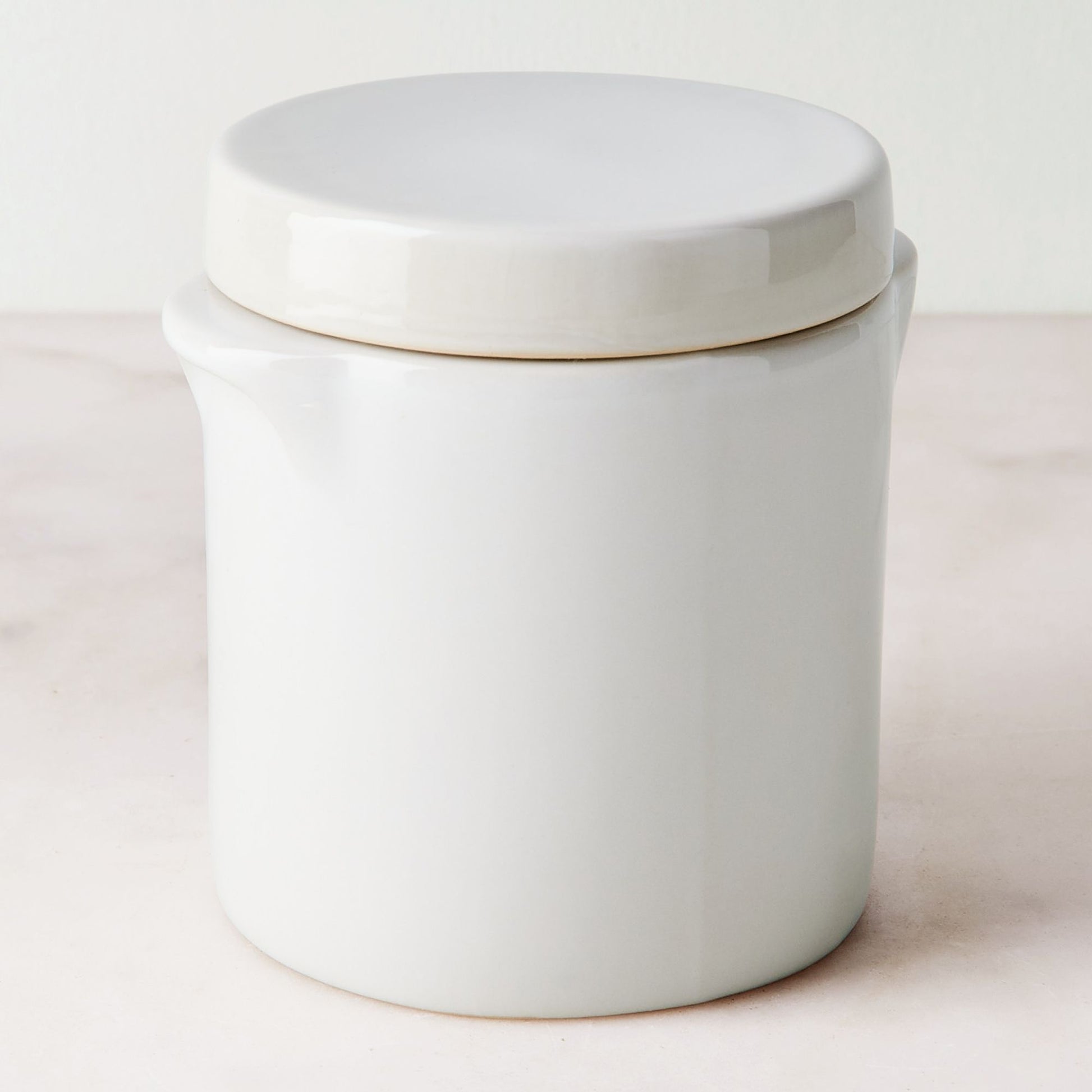 - Ceramic covered jar in 0.5- and 1-quart sizes