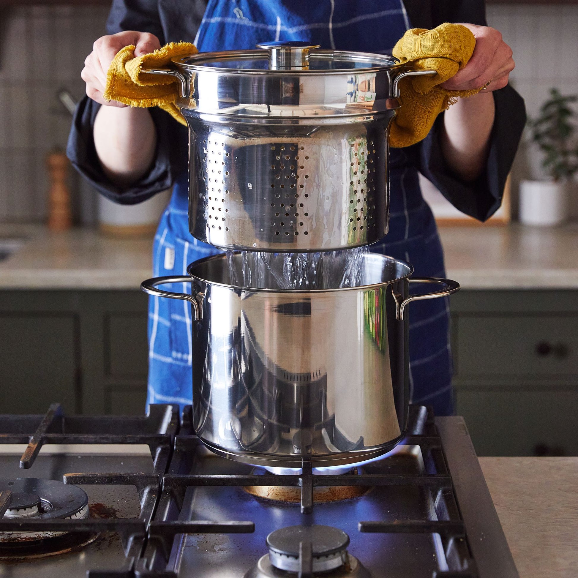 This pasta pot, two-in-one colander combo sure is a dynamo. (It's called a pastaiola—who knew?) Made in Italy, it has a stainless-steel exterior that distributes heat extra evenly, plus a perforated insert that’ll strain those noodles in a flash. It doesn’t stop at pasta, either: Use it to steam and blanch all kinds of veg, or even whip up stock or broth.