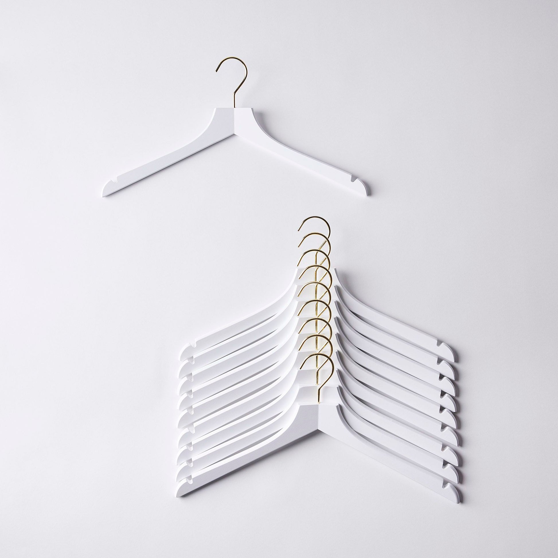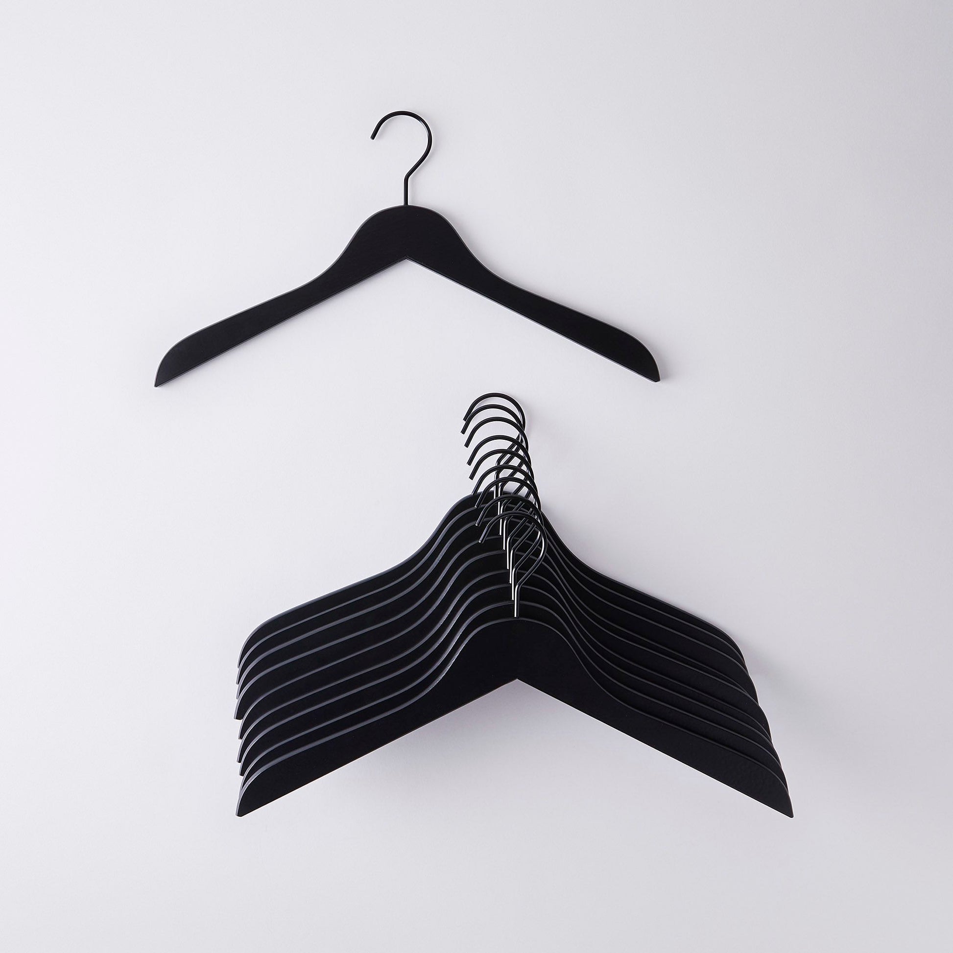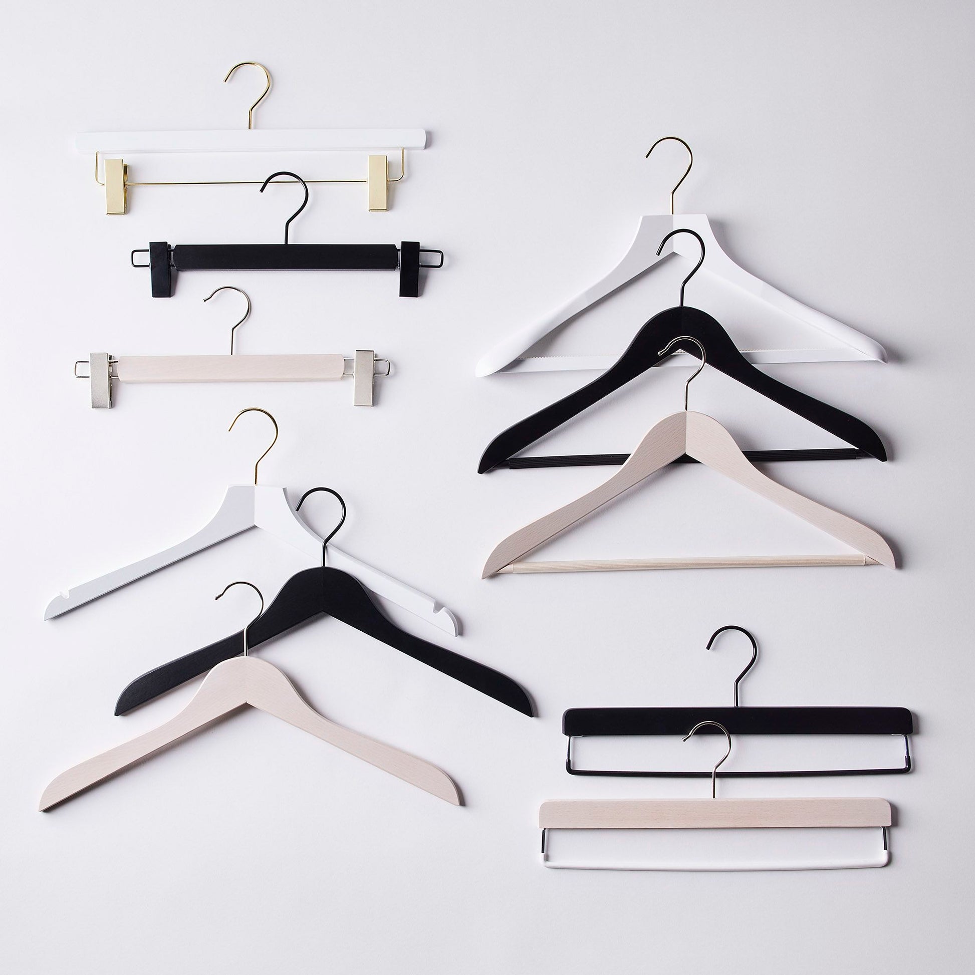 - Wooden hangers for coats, shirts, pants, skirts, and sets