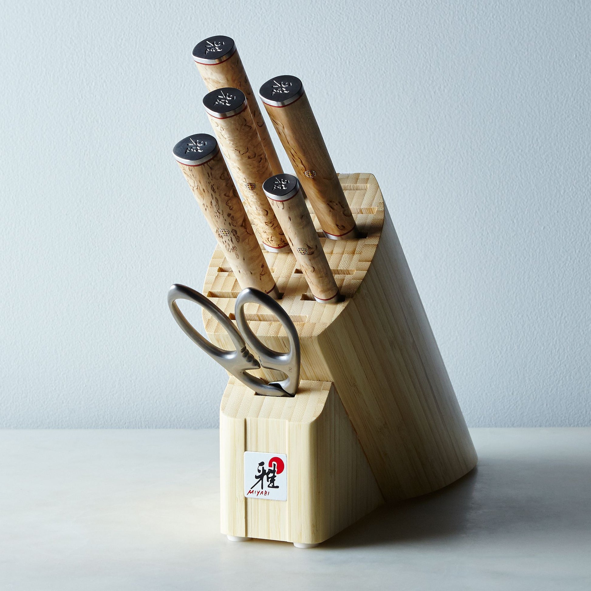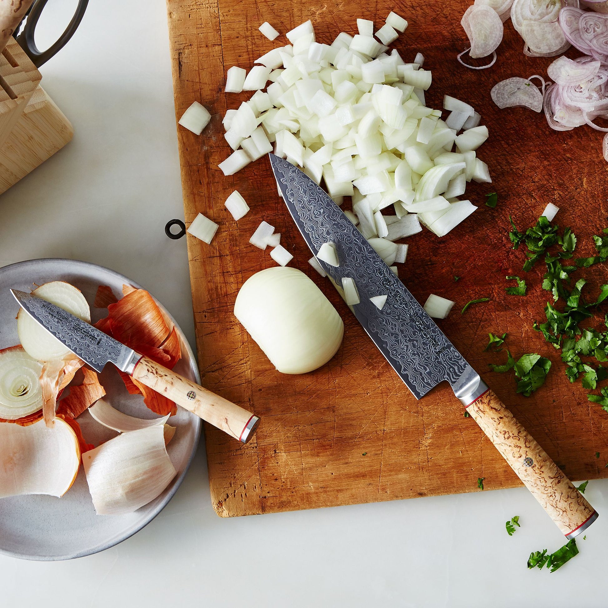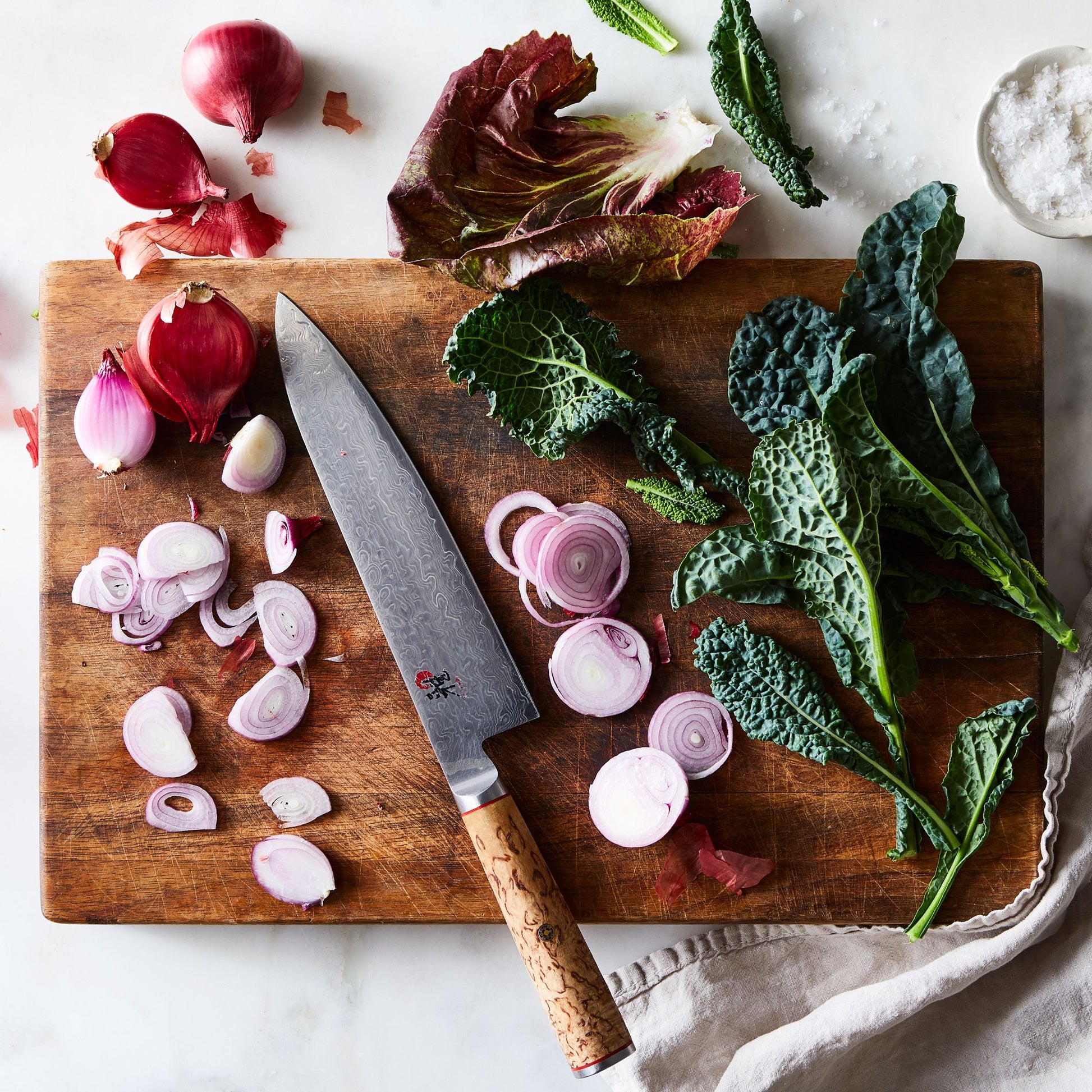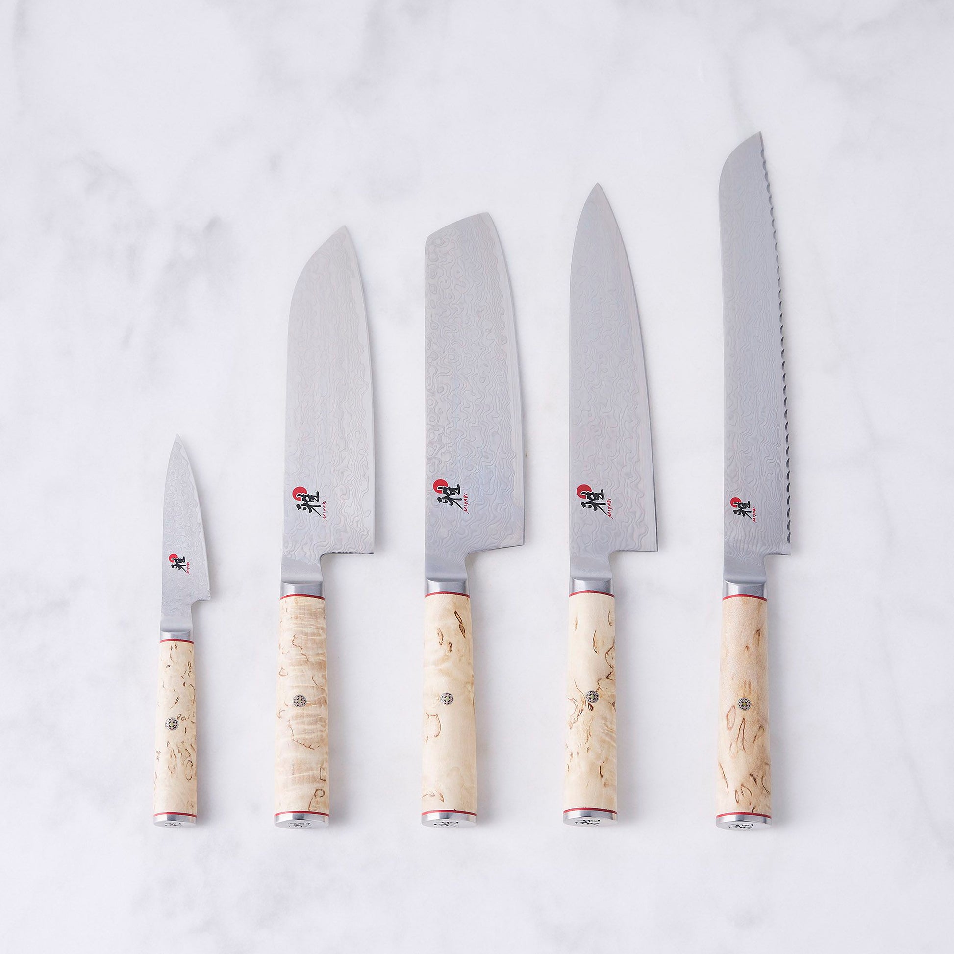 These Miyabi Birchwood knives have us totally mesmerized. The blades’ stunning, textured Damascus pattern and smooth, easy-to-grip birchwood handles make them as lovely to look at as they are powerful to use.