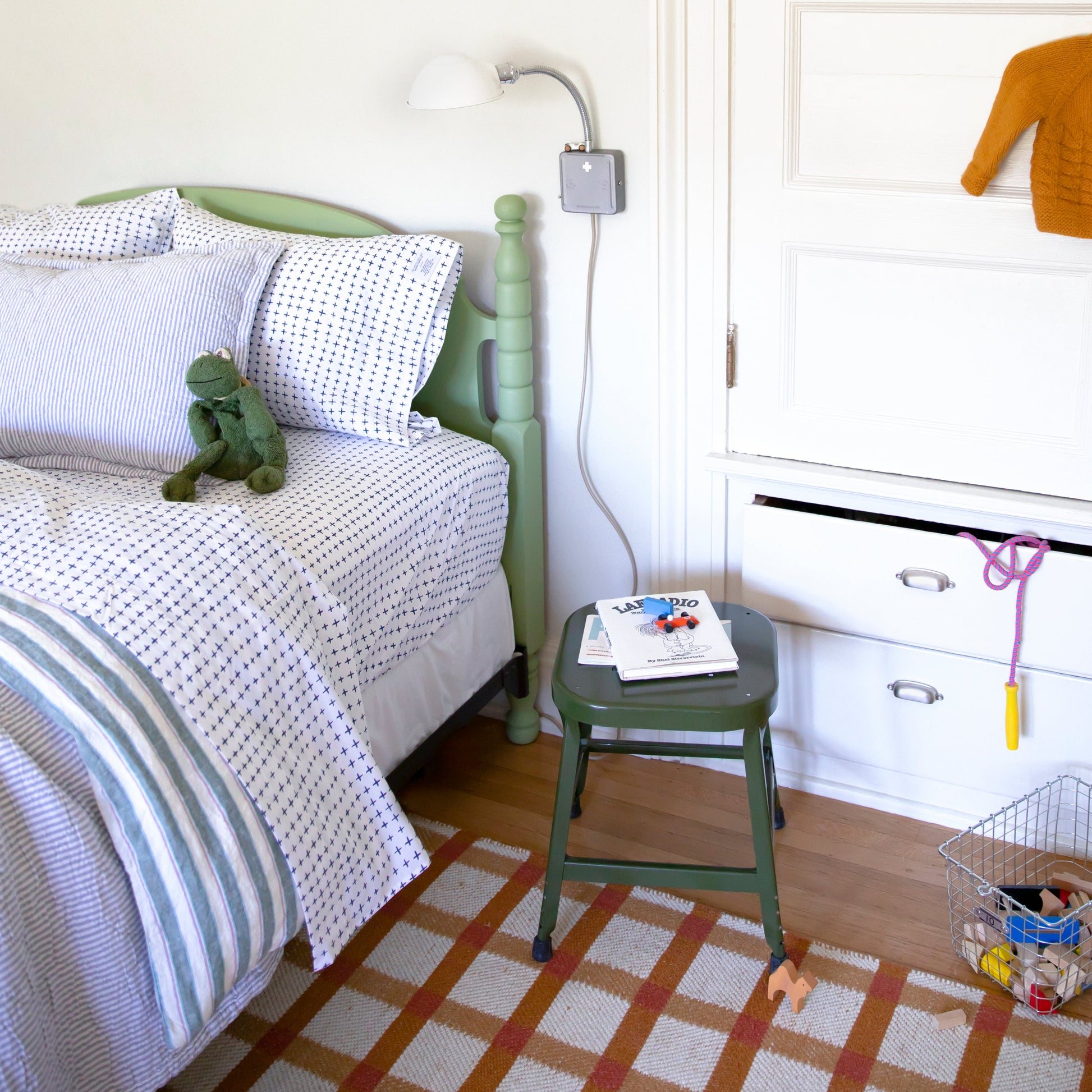 Designed by Portland-based artist Ashley Goldberg, the playful imperfection in the hand-drawn navy pluses are inviting despite the clean, uniform rows. Crafted from crisp percale cotton, the tightly woven fibers provide long-lasting durability with a soft, luxurious feel. Mix and match with any of our duvet covers or shams for unexpected yet effortless pairings. A Schoolhouse Exclusive.