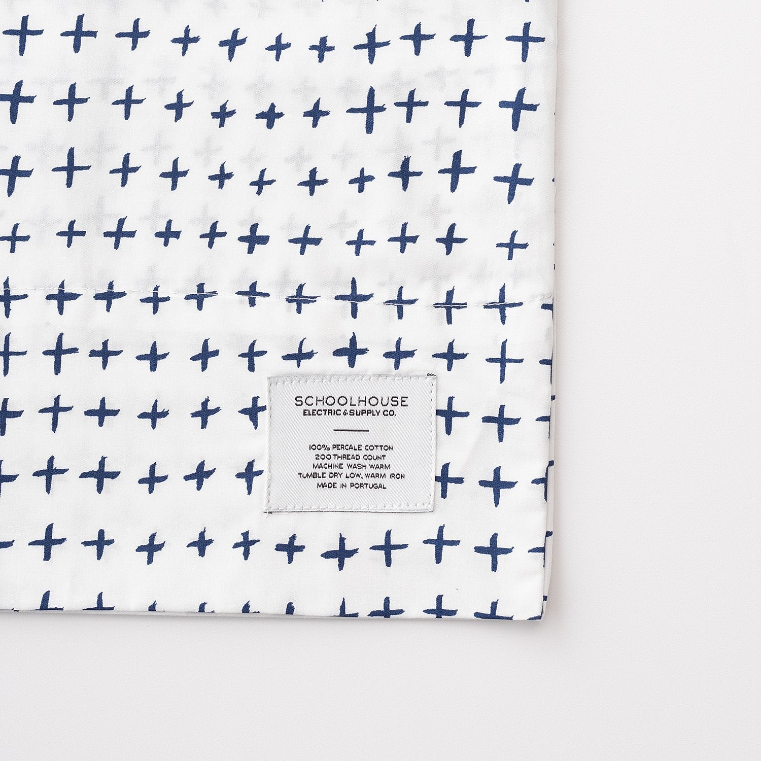 Designed by Portland-based artist Ashley Goldberg, the playful imperfection in the hand-drawn navy pluses are inviting despite the clean, uniform rows. Crafted from crisp 200-thread count cotton percale, the tightly woven fibers provide long-lasting durability with a soft, luxurious feel. Mix and match with any of our duvet covers or shams for unexpected yet effortless pairings. A Schoolhouse Exclusive.