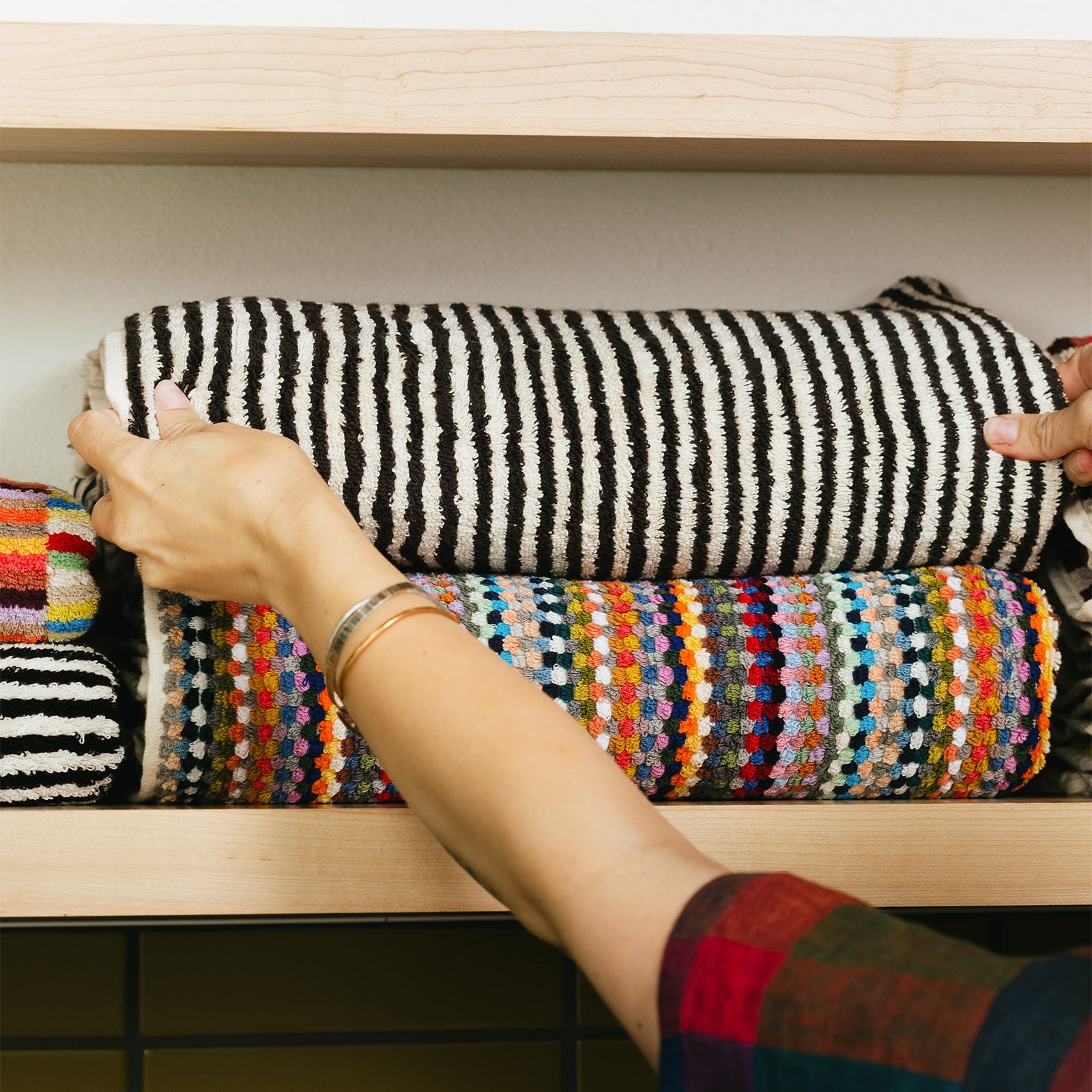 Soft, absorbent, and full of texture, these organic cotton bath sheets are hand loomed in Turkey. Sure to be a vibrant and luxurious upgrade to your daily routine.