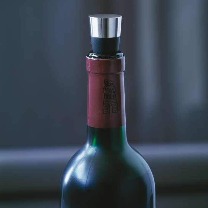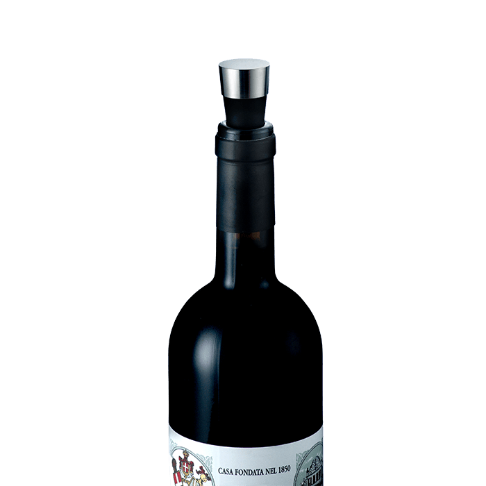 This simple and stylish wine stopper, made of steel and black plastic, is leak-proof. This extends the wine’s shelf life, allowing you to store an opened bottle. If you refrigerate the wine, it will last even longer!