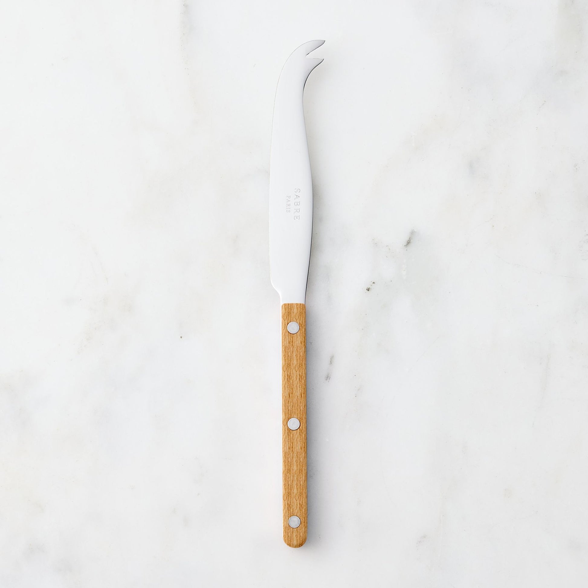Sabre’s Bistrot collection is inspired by the restaurants, terraces, and cafes all over Paris, and we can totally tell. Every utensil has simple styling, modern details, and visible rivets for a classic touch. Take a close look at this cheese knife, and you’ll also spot a shiny finish.