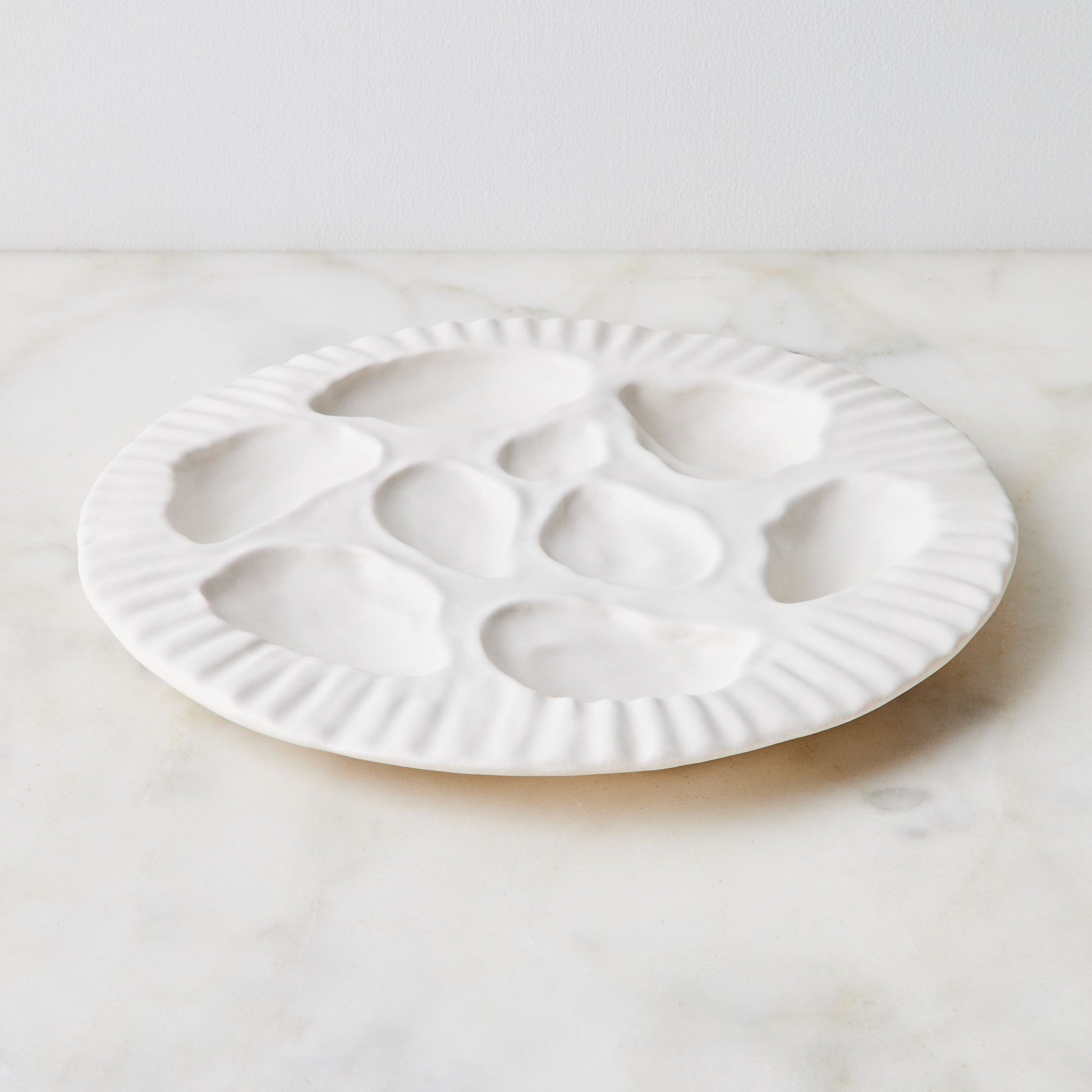 Artist Virginia Sin first dipped into Brooklyn’s ceramics scene back in 2007, and her designs have been catching eyes ever since. Now, the women-run SIN studio turns out all sorts of magic. This ceramic oyster plate has fluting inspired by paper plates and—just like oyster plates of the Victorian era—specially shaped nooks for bivalves.