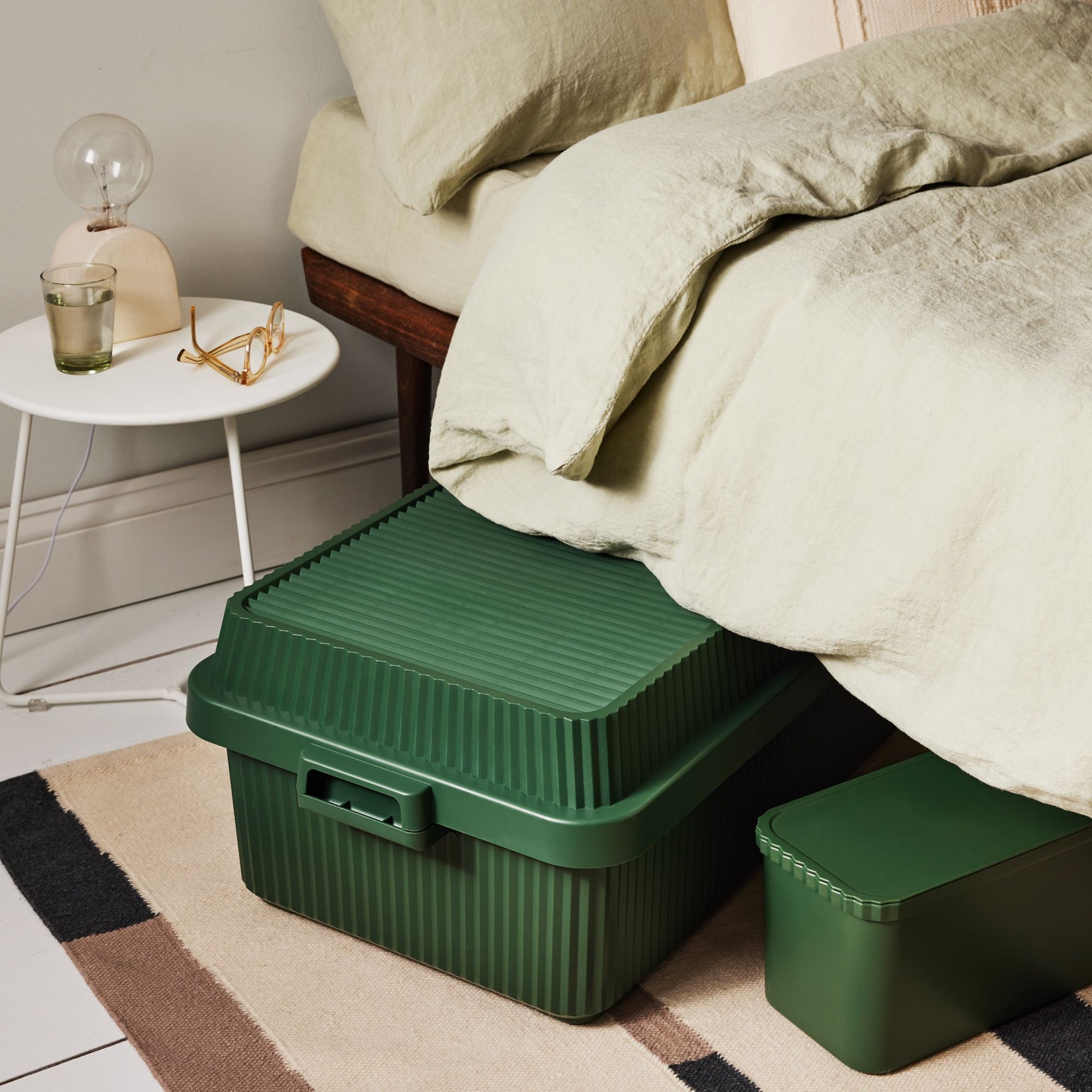 Our love for these storage containers runs deep. Designed for indoor or outdoor use, each has a waterproof, tight-fitting lid. (Go ahead, keep them out on the deck by the pool.) They’re stackable, too, no slipping or sliding in sight. Our favorite bit: There’s three sizes that mix and mingle like a dream.