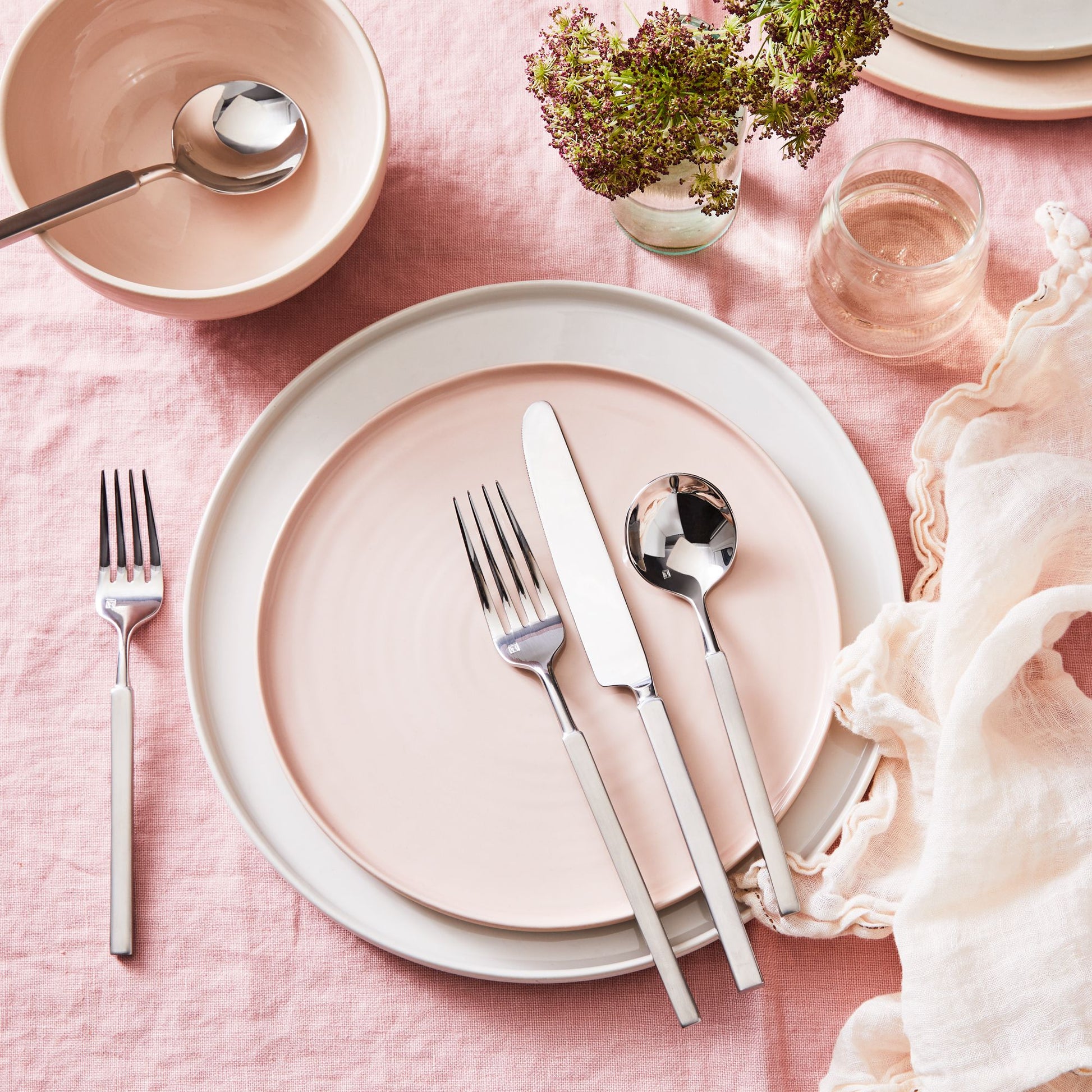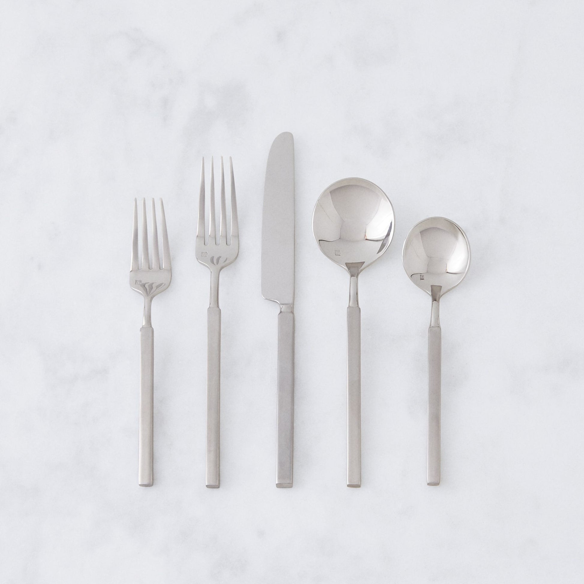 Clean lines, straight edges, a brushed finish—those are the makings of Fortessa's Jaxson flatware. The set’s sophisticated, modern look means it’s equally at home at the dinner table as it is laid out for a special occasion. Made from heavy-gauge 18/10 stainless steel, each utensil has some heft while staying balanced in your hand—elevating even your morning oatmeal to a fine dining experience.