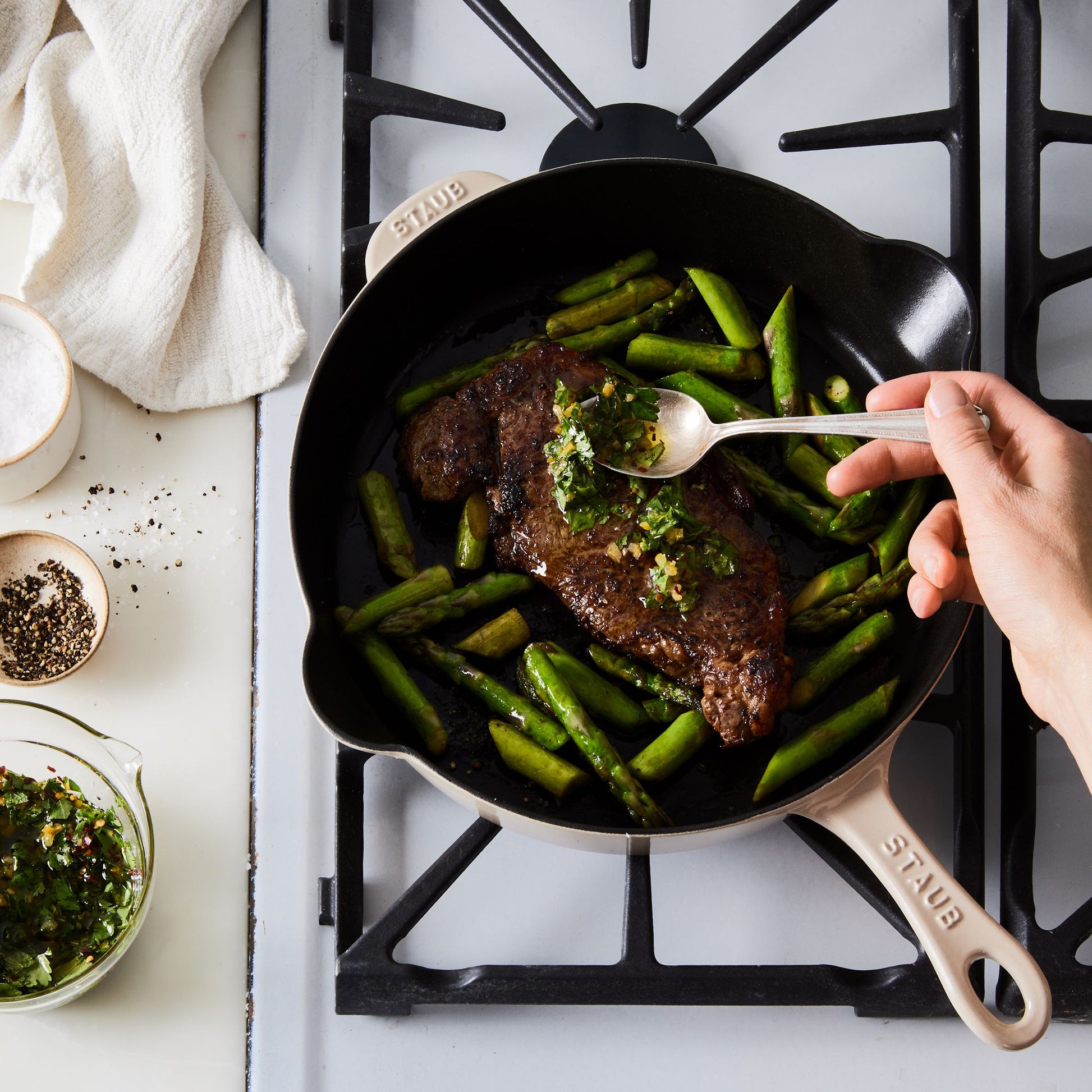 We love ourselves a good cast-iron skillet—and this one from Staub? Now we’re really swooning. A more traditional take on the typical fry pan, it’s got higher, straighter sides that let it double as a sauté pan, too.