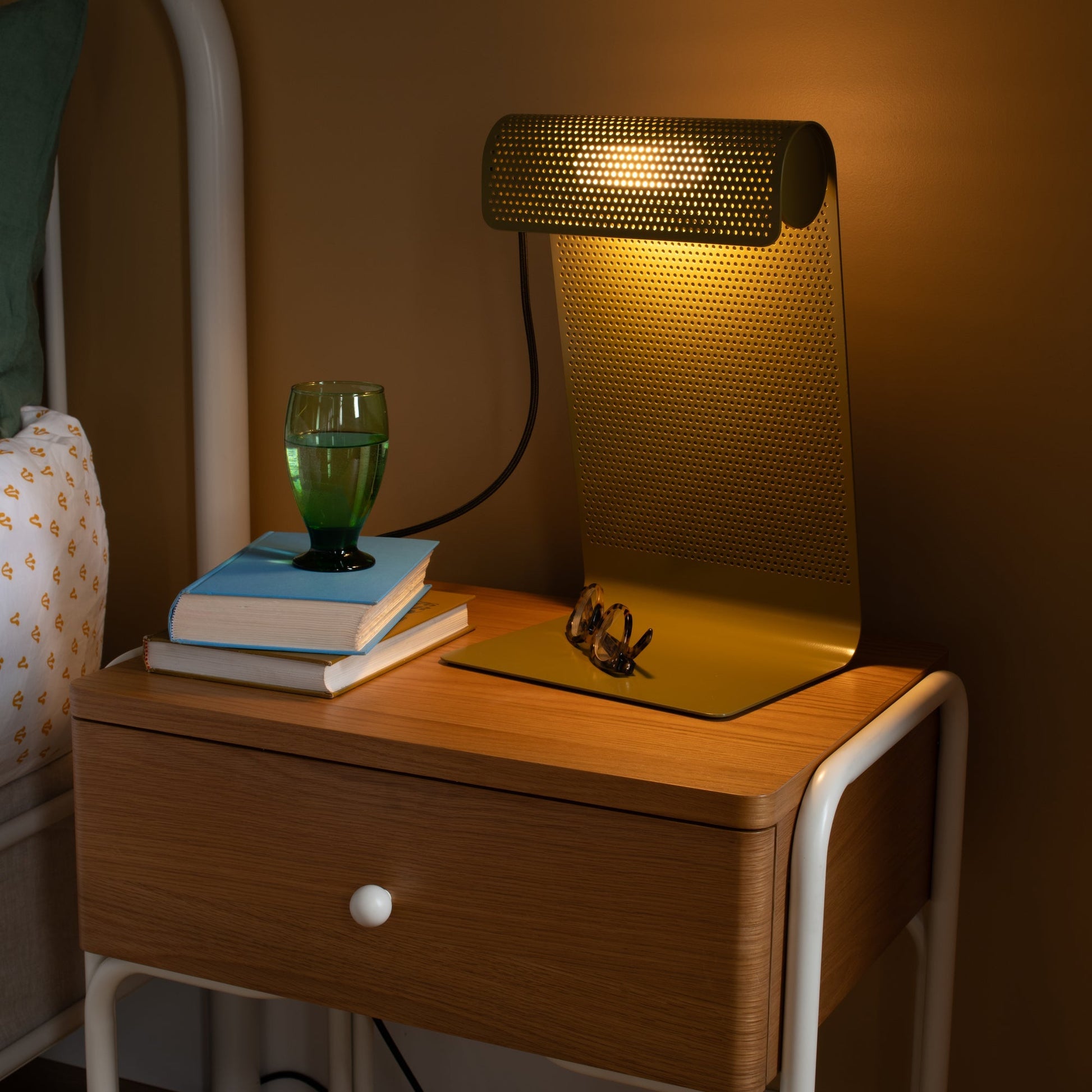 Good lighting makes all the difference, and this task lamp is here to prove it. A perforated metal shade gives just the right balance of structure and softness, while an in-line, full range dimmer lets you fine-tune the brightness. Whether it’s perched on your desk, bedside table, or reading nook, it’s sure to make your space shine. A Schoolhouse Original.